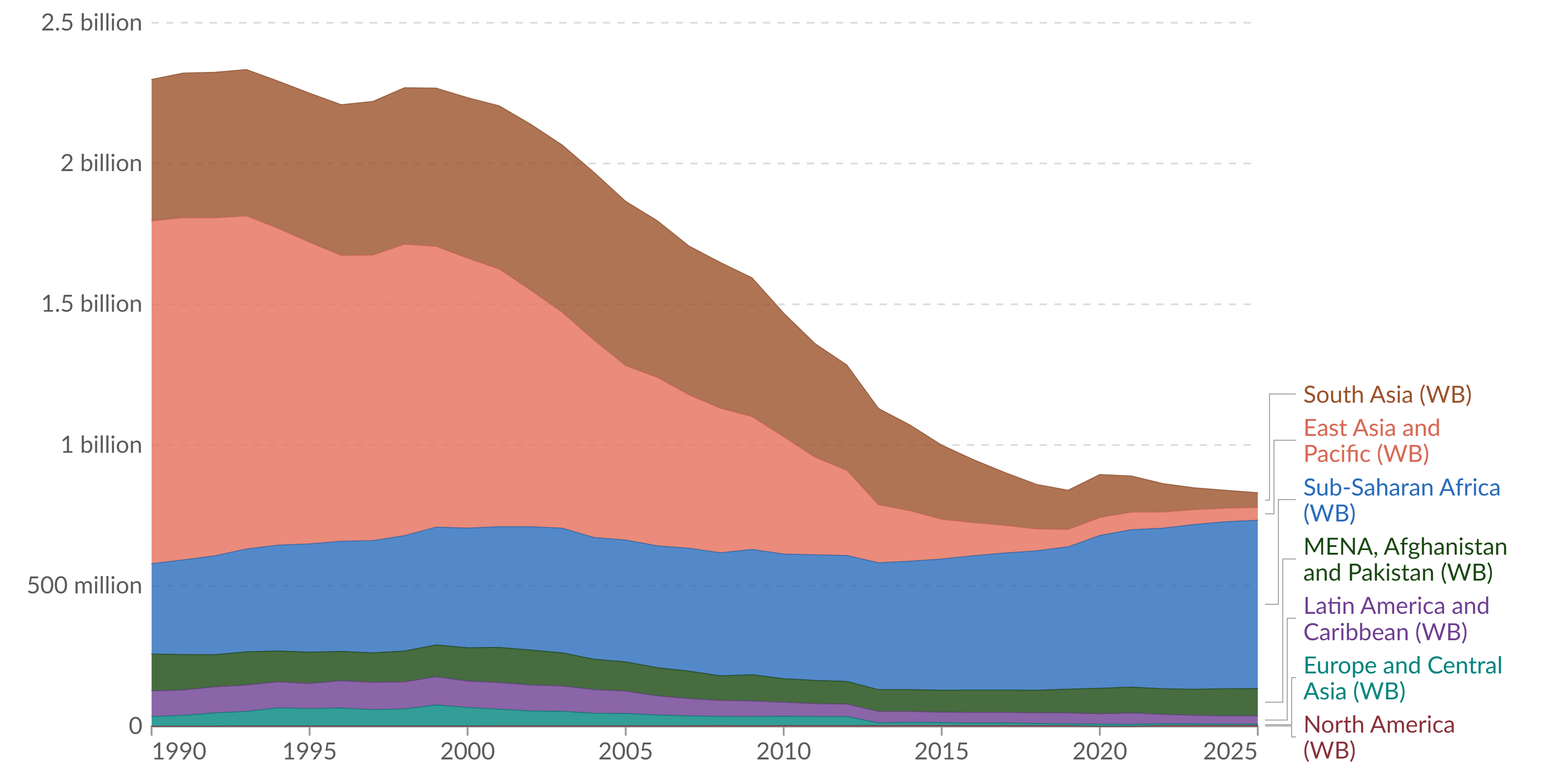 Other countries, including Cambodia, Congo, and Honduras, also achieved significant reductions in poverty, showing that this progress wasn’t limited to one region or one development model. At the same time, the picture remains uneven, with stark differences between regions.